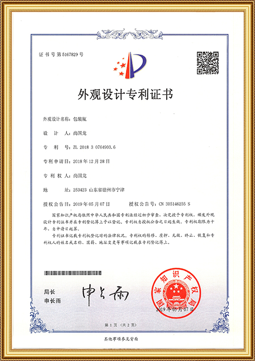外觀設(shè)計專利證書